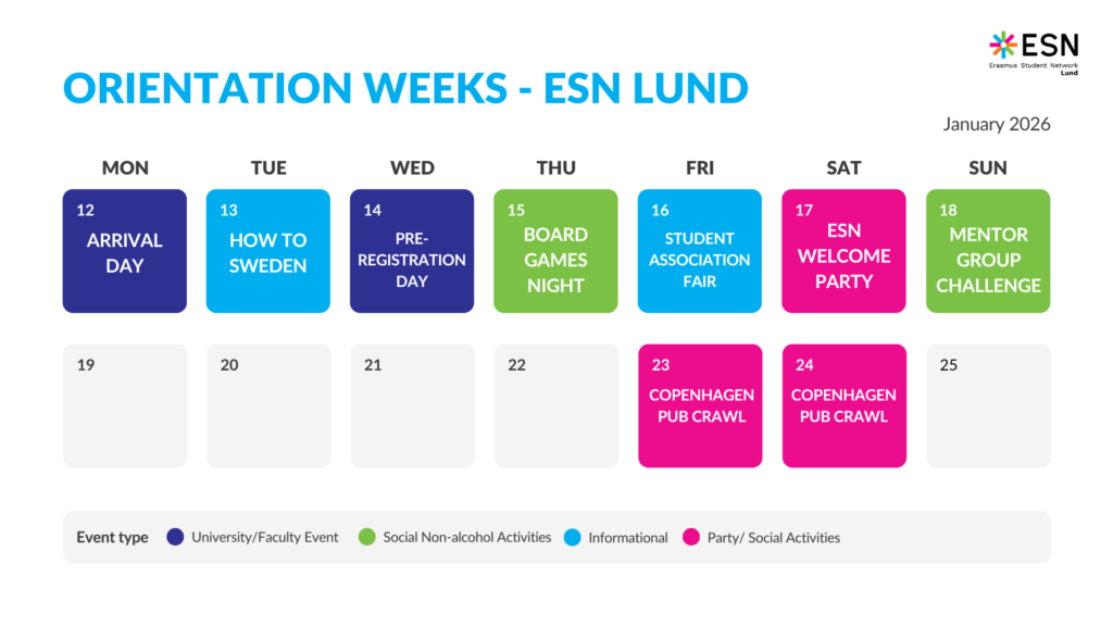 The Orientation Weeks are part of Lund University’s goal to make the arrival of new students as easy and fun as possible. ESN Lund will be participating with a mix of different events to help you settle in town, make friends, and discover what Lund and ESN have to offer!