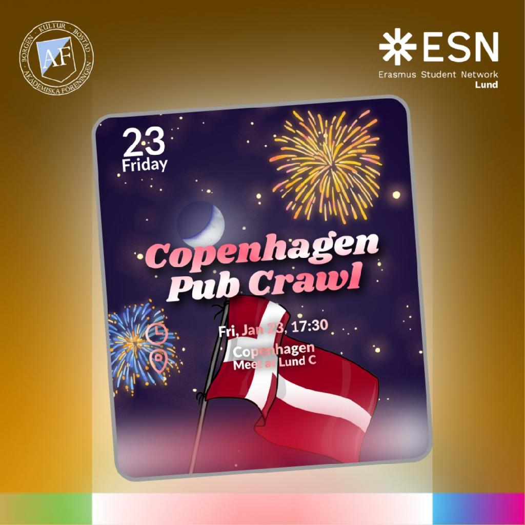 Time to explore Copenhagen’s Nightlife! ESN Lund goes Pub Crawling in Copenhagen! Join us for an unforgettable night of fun, friends, and fantastic vibes!